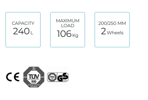 Контейнерът C240 е надеждно и практично решение за събиране на отпадъци в жилищни и обществени зони. Изработен от висококачествен HDPE и сертифициран по европейските стандарти, той осигурява здравина, дълготрайност и безопасност. С възможност за персонализация и опция за транспорт на опасни отпадъци, моделът C240 е подходящ за широк спектър приложения.