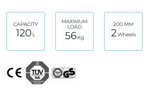 Моделът C120 е компактен, лек и устойчив модел със задно товарене и две колела, създаден за удобна употреба в градска среда. Изработен от висококачествен HDPE и сертифициран по европейските стандарти, той предлага дълготрайност, функционалност и възможност за персонализация. Перфектен избор за жилищни и административни сгради.
